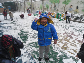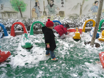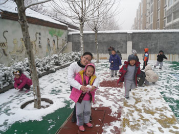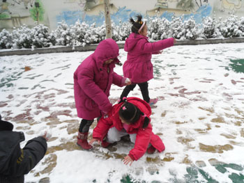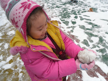 我们武装的很好不怕冷 等我在从地上抓一把雪