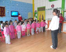 经过一个月的学习,我们的宝宝不仅学到了许多好听的儿歌,还学会了许多英语单词和英语小律动,所以我们请来了宝宝的妈妈来参加我们的这次展示活动,你瞧!